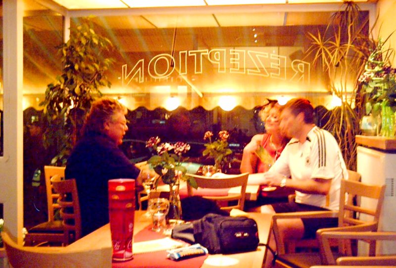 Christian lässt Wodka springen. Der freut sich königlich uns wiederzusehen. Er gibt an wie toll er alles umgebaut hat. Ich bemerke, dass das alles von unserem Geld ist und das Lenkrad am Tresen fehlt auch. Alte Geschichten werden aufgewärmt. Inzwischen führt Italien 3:0. Haben wir vor lauter Lachen und Erzählen gar nicht richtig mitbekommen. Na, Dienstag schicken wir die wohl auch nach Hause. Nun aber los auf die Fan Meile. Party machen. Sabine und 2 Tresenfachkräfte kommen auch mit. Mega Alarm hier. Plötzlich wieder mein Nachbar Knötzke hinter mir. Er ist ganz stolz im Stadion gewesen zu sein und bass erstaunt als er hört das wir tatsächlich tauschen konnten. Damit hat er nicht gerechnet. Nach unzähligen Bier geht’s zurück nach Hause. Der Taxifahrer ist leicht ortsunkundig. Will nur die Hälfte haben als wir endlich ankommen. Das schlagen wir aus. Er hat das ganze Geld verdient. Sagenhaft gelacht. „Ich wäre jetzt von der anderen Seite gekommen!“ Noch ein letzter Sundowner und ab ins Bett! Es ist schon wieder hell. Wenn Arne wüsste, was er heute verpasst hat!!