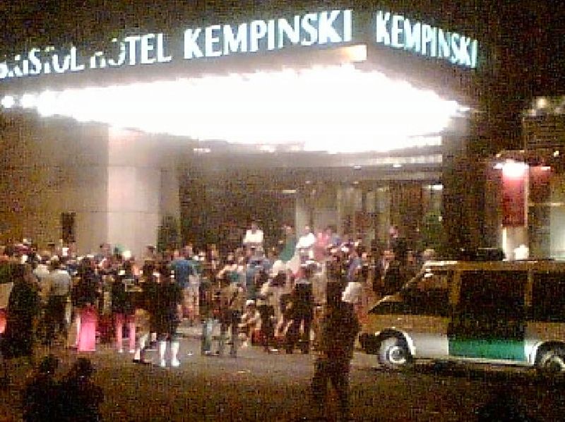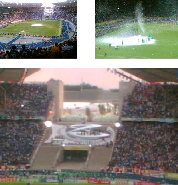 Zu Recht haben die anderen ihre Tickets verkauft. „Wenn England und Brasilien….. Hätte, wenn und aber!“ Wenn man nicht weiss mit wem man mitfiebern soll ist jedes Spiel langweilig. Wie schon in München null Atmosphäre. Die Stimmung und das Drumherum sind, finde ich, eines Endspieles nicht würdig. Komisch ist das schon, wie Premiere in der Kompaktsendung es schafft darzustellen, wie mitreissend das Spiel ist. Hanno und mir ist langweilig. Die Franzosen sind zu blöd und die Itaker sind stehend k.o. Den Elfer haut Zidane cool rein. Den hätte man aber nicht geben müssen. Dem Ausgleich Italiens ging ein Foulspiel voraus. Ausgerechnet Zidane, dieser Held, eine Ikone des Fussballs, rastet auch noch aus und holt sich rot in dem letzten Spiel seiner Karriere. Schönes Vorbild für die Jugend! Wieso wird er trotzdem zum besten Spieler des Turniers gewählt? Nach der Karte spielen beide Mannschaften Deutschland – Österreich. In einem WM Finale einen Nichtangriffspakt! Italien gewinnt unverdient das Elfmeterschiessen. Trotz des Sieges kommt keine richtige Stimmung auf. Dafür sind auch zu wenig Fans aus Italien im Stadion. Die laute Musik und das Feuerwerk pushen das Ganze erheblich. Im Fernsehen kommt bestimmt eine wunderbare Stimmung rüber. Ich will das nicht mies machen aber das sind meine Eindrücke. Schnell sind wir zurück im Hotel. Da das Bier im Stadion ungeniessbar ist, habe ich jetzt einiges aufzuholen um das Level der anderen wieder zu erreichen. Als mein Level nach einer Druckbetankung wieder in Ordnung ist brechen wir auf zum Ku`damm. Der ist zwar wieder gesperrt aber hier und da nur ein paar Italiener die feiern. Vor dem Hotel der Weltmeister ist natürlich ein Riesenauflauf. Die Fans warten auf die Spieler. Das interessiert uns nicht wirklich. Noch irgendwo in einer Strassenkneipe ein Bier ,denken wir, und landen wieder in der Karaokebar. Hier feiern deutsche Fans noch mal eine geile WM-Party.
